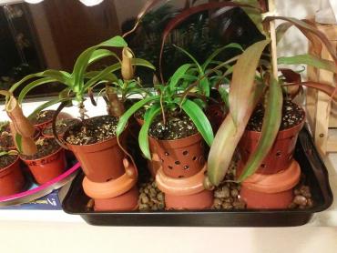 Ciesze się ze sie podobają. Wszystkie stoją na jednej tacy wysypanej keramzytem zalanym woda, w rogu parapetu połódniowego tak zeby nie byly narazone na zimne powietrze gdy otwieram okno. Doswietlane od miesiąca żarówką led grow 10w.