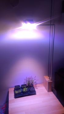 W końcu zrobiłem swoją lampkę. Nosiłem się z zamiarem od kilku miesięcy ale teraz na urlopie jakoś zebrałem czas, siły, parę groszy i odszukałem parę niepotrzebnych gratów. Chcę najpierw podziękować użytkownikowi Tracer274 za cierpliwość oraz o podpowiedzi. W paru sprawach go posłuchałem, a w paru zrobiłem po swojemu. Ze względu na niższą cenę zakupu i ewentualnej naprawy /korekty - lampkę wykonałem na diodach 3w. Jest tam 12 diód 3w: 1 zielona, 1uv , 2 royal blue i 8 white full spectrum. Te ostatnie wziąłem ze względu na ciekawość. Podobno dają podobne widmo w rejonach czerwonym i niebieskim jak zwykłe fullspectrum + część widma w pozostałym zakresie pasma widzialnego. Przy okazji zrobię test. Nie wiem czy co miesiąc czy co dwa tygodnie będę robił zdjęcia, żeby porównać wzrost i wybarwienie roślin. Uv dla wybarwienia razem w white full spectrum. Royal blue do wzmocnienia pasma niebieskiego i zielona do wybielenia. Ogólnie to mogę powiedzieć że same diody white full spectrum nie wymagają wybielenia. Kolor widzialny to biały pośrodku, ani ciepły ani zimny. Coś może w temperaturze 5000k. Na diody założyłem kolimatory 45 stopni. Na koniec parę zdjęć: