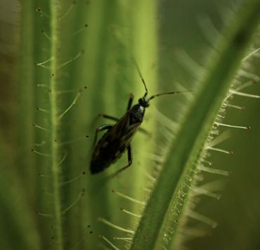 1. Start sportowy Roridula gorgonias z symbiotycznym pluskwiakiem Pameridea roridulae
