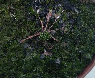 Proszę o pomoc w identyfikacji niżej wymienionego stwora. Jeden wyrósł mi z zakupionych nasion muchołówki. Nie przywiązywałem dużej wagi do niego gdyż mógł to być przybysz z zewnątrz - przyniesione nasiono wiatrem. Ale wczoraj zapodałem sobie rosiczkę w OBI i znalazłem identycznego stwora między rosiczkami. Ma jakby włoski na liściach, bardzo oszczędne korzenie, i rozetki na liściach. Roślina teraz mieszka w doniczce o średnicy 6 cm.