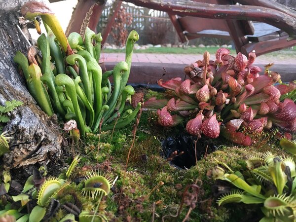 Witam wszystkich po długiej przerwie. W moim ’mini torfowisku’ zaszły pewne zmiany. Wyrzuciłem leśny mech i stworzyłem małe ’oczko wodne’. W koło tego oczka dałem żywy mech torfowiec na którym posadziłem rodzine rosiczki. W tej chwili torfowisko nie wygląda jakoś super, ponieważ zdjęcia robiłem po piewszych przymrozkach 🙂 Najbardziej widać to po muchołówkach bo troche zmarniały no i wiadomo, rodzime rosiczki poszły spać 🙂