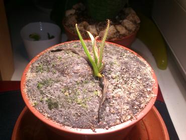 Ja natomiast, mam dalej problem ze swoją drosera regia o której pisałem parę postów wyżej. Kupiłem ją także na festiwalu roślin owadożernych jakoś w połowie października. Kupiłem ją jako małą, potem liście, które były na początku uschły i w ich miejscu zaczęły pojawiać się nowe, niby po aklimatyzacji już. Widać to było po tym, że w czasie zakupu i do uschnięcia starych liści nie było na nich kropelek cieczy. Dopiero nowe liście mają włoski o czerwonej barwie i ładne, małe kropelki. Problem w tym, że każdy nowy liść jest mniejszy od poprzedniego.