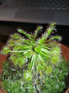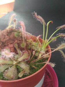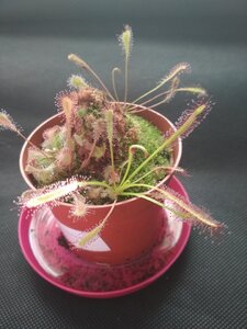 Z rosiczek na pewno na parapecie na zimę zostaje pigmejska pulchella x nitidula. Do tego w posiadaniu są: capensis (już wyrośnięty), scorpoides (też dorosły), młode wersje madagascariensis, affinis i nidiformis. Miałem jeszcze dwie. Jedna to filiformis. Miała fajne, długie pełne kropelek pędy. I nagle pod koniec wakacji zaczęła usychać. A z miejsca tuż nad ziemią gdzie wyrastały liście, zrobiła się taka jakby wata. Obciąłem uschnięte pędy, Poobrywałem te kawałki "waty" i wygląda jakby tam były jakieś zielone pąki. Wrzucę zdjęcia wieczorem. Druga to rotundifolia. Kupiłem ją wczesną wiosną. Z każdym dniem wypuszczała więcej liści, każdy liść był coraz krótszy. Potem zaczęła usychać. Teraz wygląda na kępkę suchych liści. Co ciekawe dookoła niej wyrosły chyba 5 nowych roślinek. I co ciekawe, dwie z niej to chyba alicae. Pozostałe 3 wyglądają mi na czerwone wersje capensisa. Zdjęcia też wrzucę wieczorem