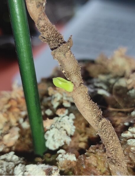 Czołem. Pozwolę się tutaj podpiąć. Co prawda nie dotyczy Hookeriany, ale mam chyba podobną sytuację. Pojawiło się coś takiego: Miałem już odrosty, ale z reguły wychodziły spod podłoża tuz przy łodydze. Nigdy nie wyrosło mi nic, ze się tak wyrażę, nad ziemią. To też odrost nowej roślinki?