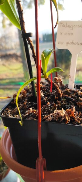 Odrost już się rozwinął na tyle, że zaczyna pompować dzbanka. Mam go odciąć wzdłuż czerwonych linii i wsadzić do mchu? czy jest szansa że oderwie się bez problemu i duża roslina nie będzie pocięta ?