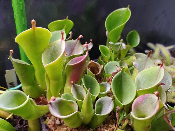 Po zmianie lampy na mocniejszą dzbaneczniki mogą wypuścić mniejszy liść, ale kolejne powinny być już większe, jeśli wilgotność masz na poziomie 80% to powinna być odpowiednia. Dzbaneczniki z tego co widzę masz głównie nizinne, więc temperatura 25*C Powinna im odpowiadać, jeśli chcesz nieco przyspieszyć wzrost możesz dać 1-2 kulki osmocote długo działającego do doniczek. Jak często podlewasz rośliny?