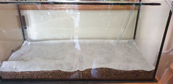 Keramzyt został przykryty pojedynczą warstwą agrowłókniny, celem tego zabiegu było oddzielenie podłoża właściwego od warstwy wodonośnej, czyli zapewnienie przenikania wilgoci bez przenikania szeroko rozumianych składników podłoża. Agrowłóknina została wstępnie zwilżona wodą (z filtra RO), w celu ułatwienia rozpoczęcia procesu parowania i przenikania wilgoci z keramzytu do podłoża.