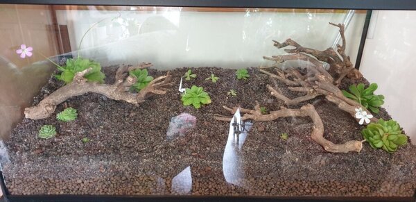 Całość nie prezentuje się źle, chociaż zawsze pozostaje pewnego rodzaju niedosyt, chciało by się czegoś bogatszego, więcej elementów, bardziej rozbudować, upiększyć, może jakiś element łał. Może kolejne terrarium będzie większe i bardziej szalone? Póki co mam co mam, jakaś zgoda pomiędzy moją żoną i mną, Ona nie chciała się zgodzić na większe, ja wywalczyłem ile się dało.