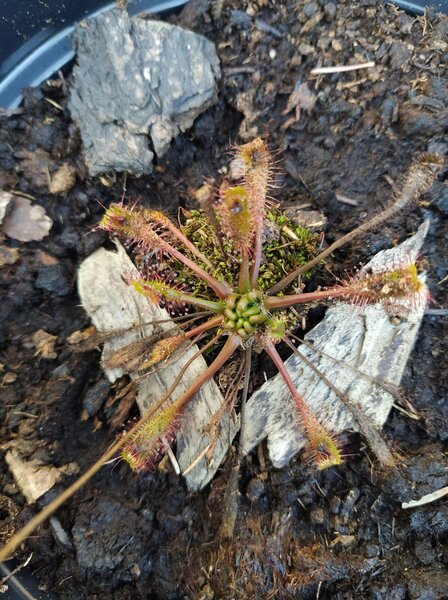 1. Jedna z moich rosiczek wytworzyła coś ala "pąk" na środku. Ktoś wie o co z tym chodzi? Czy wynika to z zmieniającej się pory roku i tym sposobem rosiczka ma zamiar przetrwać zimę? --------------------------------------------------------------------------------------------------------------------- 2. Rosiczka rotundifolia zasadzona w torfowcu strasznie słabnie wraz z torfem. Staje się on coraz bladszy a na końcówkach czarny. Czy to naturalne na powoli zbliżającą się zimę? Czy może powinienem ją rozsadzić i oddzielić od torfu?