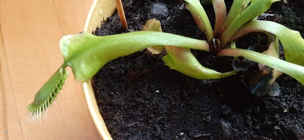6. Moja muchołówka zaczyna coraz bardziej marnieć. Teraz zasychają nawet takie młode liście.