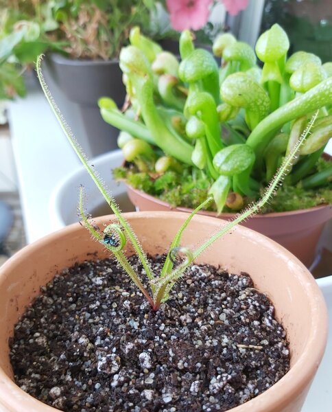 Przesadziłem też dwie odłamane części darlingtonii. Przyjęły się fantastycznie rosną pod lampami, a nie w terrarium, więc wilgotność niższa.