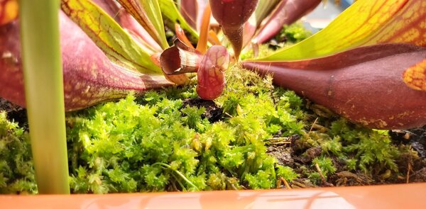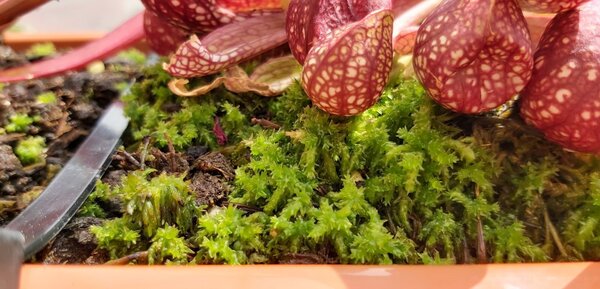 W okresie spoczynku mam plan mocno podsuszyć podłoże. Nie na wiór, ale na pewno nie tak mokro jak obecnie. Jak mech przyschnie to odrośnie na wiosnę. Tylko patrząc w drugą strone czy to nie będzie problematyczne dla psittaciny? I darlingtonii? Jest tam jako mały rodzynek dosadzona. Bo purpurea powinna dać radę. Ps. Najładniej mech rośnie przy alacie nie psittacinie 😕