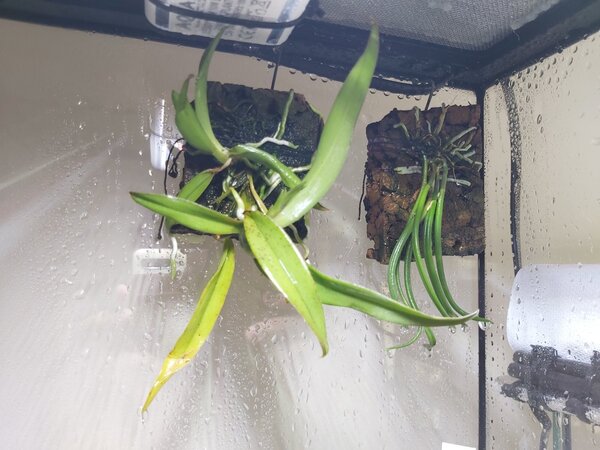 Nie są to owadożery i nie wydaje mi się zasadne pisać tu o moich innych roślinach, ale dzielą terrarium. Jedno odstępstwo dla nowych współlokatorów Z prawej leptotes bicolor, z lewej oncidium onustum