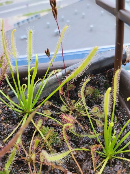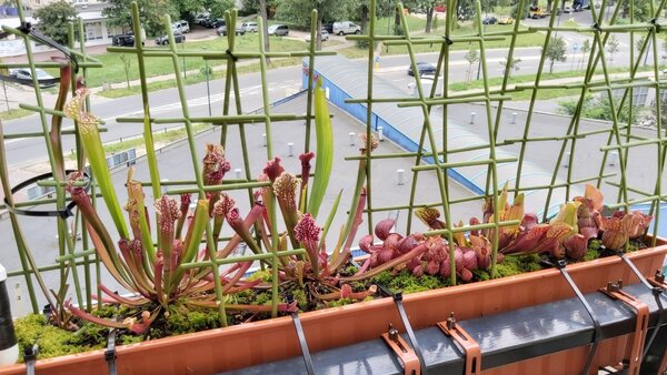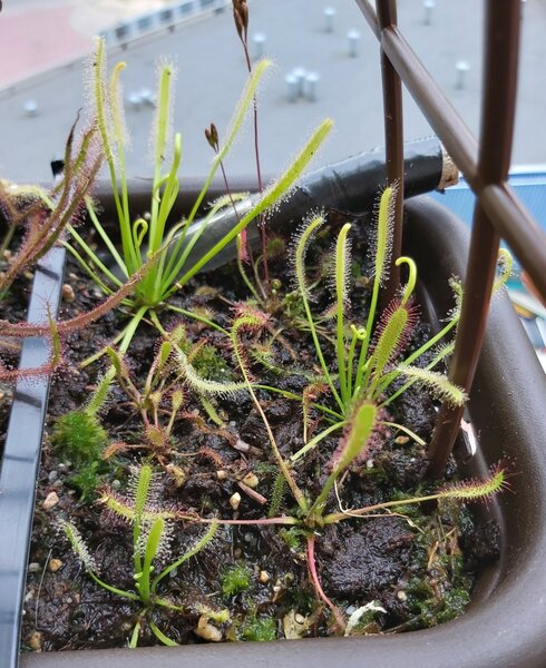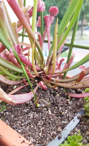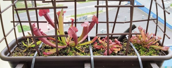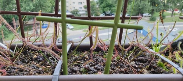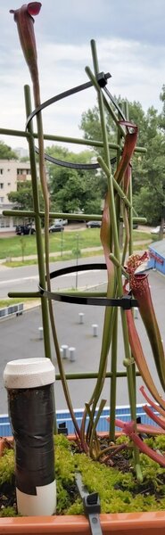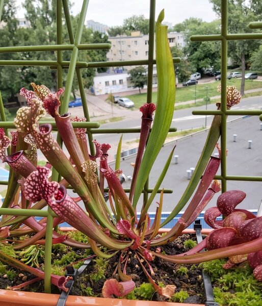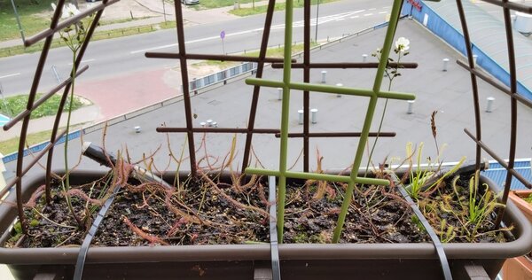 @Cephalotus Wiatr nie przeszkadza żadnej z roślin. Pewnie połamałby alatę, ale ona jako jedyna rośnie taka wysoka. Binaty chroni trochę rant skrzynki tak do wysokości 3-4cm, ale z tego co podpatrywałem jest za słaby żeby ją położyć czy połamać. Najgorsze są deszcze. Wychlapując torf czy perlit oblepiają wszystkie kropeli i przyklejają je do podłoża. Chwila pracy po deszczu i jest ok bez tego zabiegu by pewnie wolniej rosły.
