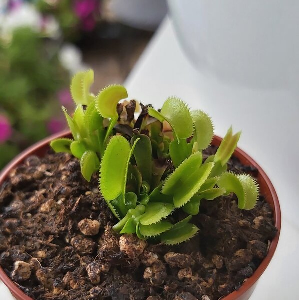 Jedna odżyła Druga sam nie wiem. Rośnie, ale wygląda jakby zaczeła ewoluować w coś innego nich muchołówka i średnio by to jej wyszło