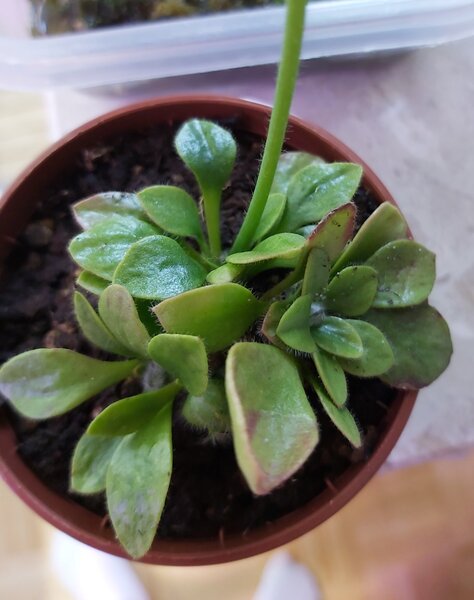 Dosadziłem jedną binatę. Była jako dodatkowy maluch do jednej z tych co tam już rosną. Pod lampami ładnie podrosła i wylądowała w donicze jeszcze jedna, większa w kolejce czeka, ale póki co kwitnie, więc nie ruszam. Jak skończy to ją dosadzę. Nie wiem tylko czy przetrwa zimę, bo to var. multifida. Jednego małego cukiereczka sobie zostawiam pod lampami. Taką z 2cm wysokości może Apropo kwitnienia