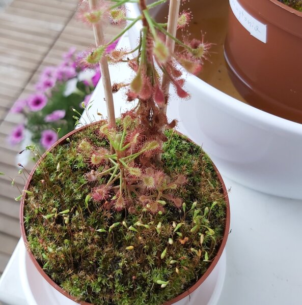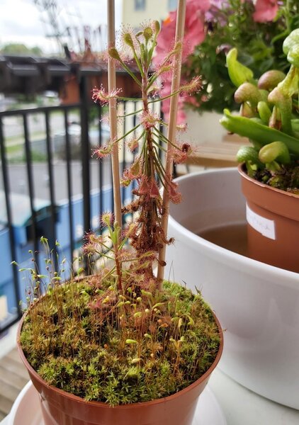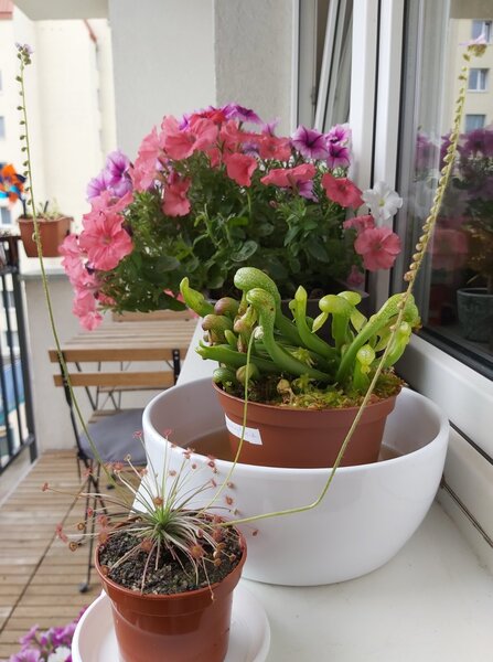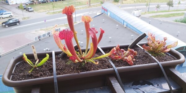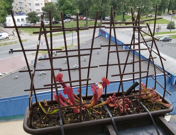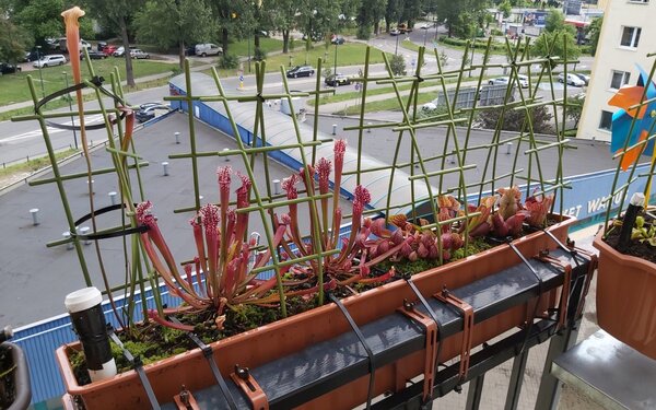 Deszcz daje trochę popalić moim podopiecznym. Syf na balkonie od wychlapanego torfu z oerlitem straszny, a pada ostatnio ciągle 😕 Coś ostatnio miałem muchołówki "pocięte". Pułapki, dosłownie kilka, wyglądały jakby coś większego starało się z tego wyjść. Dziś z rana masakra. Nie ma z połowy pułapek, a z boku jeszcze ptasi stolec. No jak nic przerzuciły sie z torfowca na muchołówki. Z tego co wcześniej też widziałem niektore purpuree, a nawet trochę psittacina poszaprana. Myślałem, że to może intensywny deszcz, ale stawiam jednak na ptaki. Zaczynamy małą wojenke