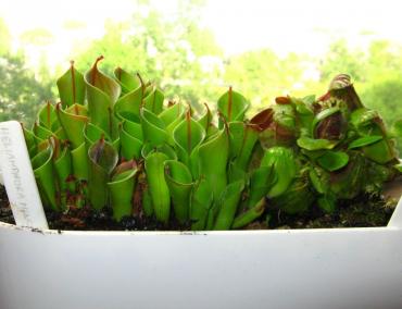 Ptaah, wksek - dziękuję za pochwały. mieczus Risa mnie wyręczyła i podała link. Risa rośliny kiepsko zniosły zimowanie i nie prezentują się dobrze, ale wrzucam taką fotkę "na szybko". NepenthesPL parapet jest wschodni, a jedyna modyfikacja to doświetlanie, ale raczej skromne. Wilgotność 50-70% (w deszczowe dni do 90%), a temp 19-22°C w okresie zimowym i 25-32°C latem. Od października do kwietnia N. bicalcarata ma zastój, ale wiosną jak się ociepli zaczyna produkować dzbanki. Helki zaś cały rok mają się świetnie (w odróżnieniu od kilku nieszczęśników umieszczonych w terra). Tak wyglądały krótko po posadzeniu, pod koniec 2013: