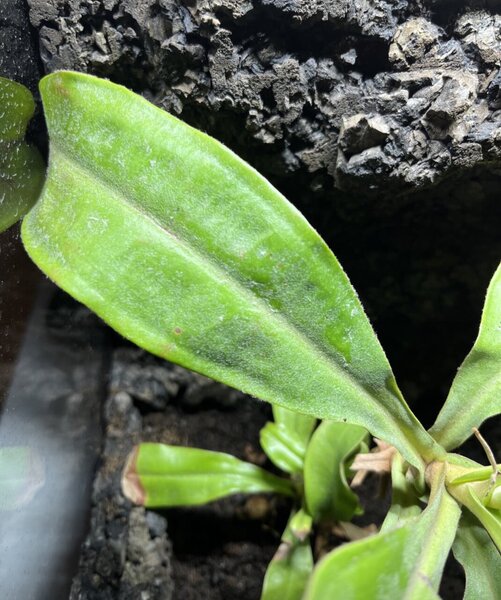 Hej. To mój pierwszy temat, więc dzień dobry! Mam od około roku dzbanka. Południowy parapet, wilgotność 50%, 20-25st, w zależności od pogody słońce in cień. Niestety stracił wszystkie dzbanki i sporo liści. Staram się reanimować go. Otwarte terrarium z nawilżaniem, stabilnymi warunkami, nowym torfem, i oświetleniem. Pytanie, czy nalot na liściach to jakaś choroba/grzyb, czy naturalny nalot dzbanka? Ponadto, z czego mogą wynikać wysuszone końcówki liści? Dziękuję za odpowiedzi!